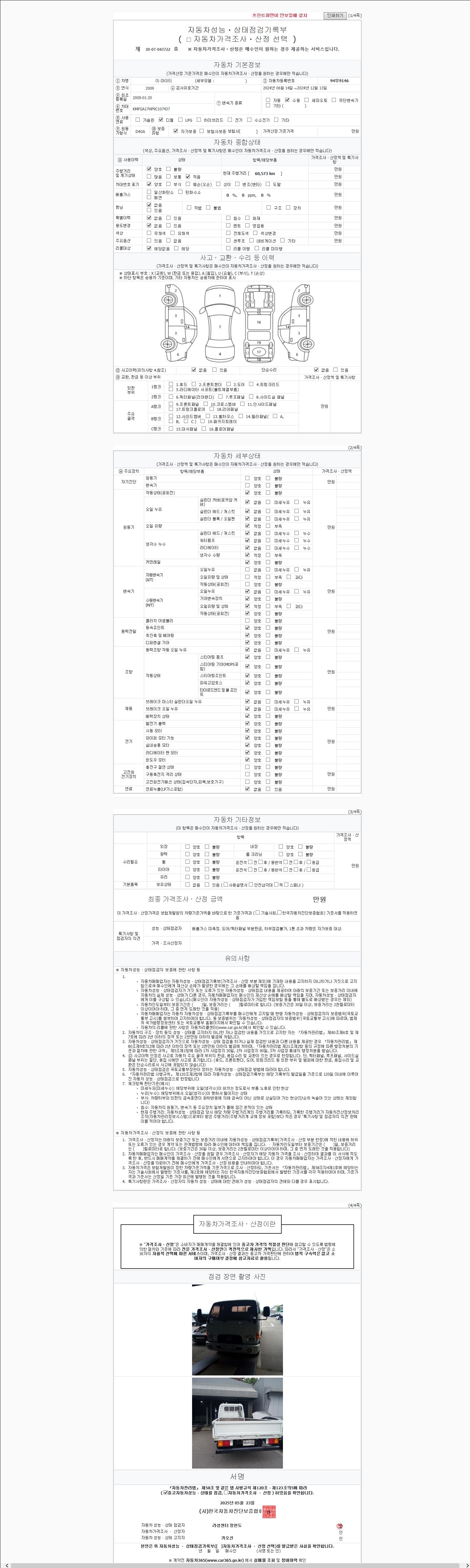 사고유무 성능기록부 참조 제시번호 제 2147483647 호