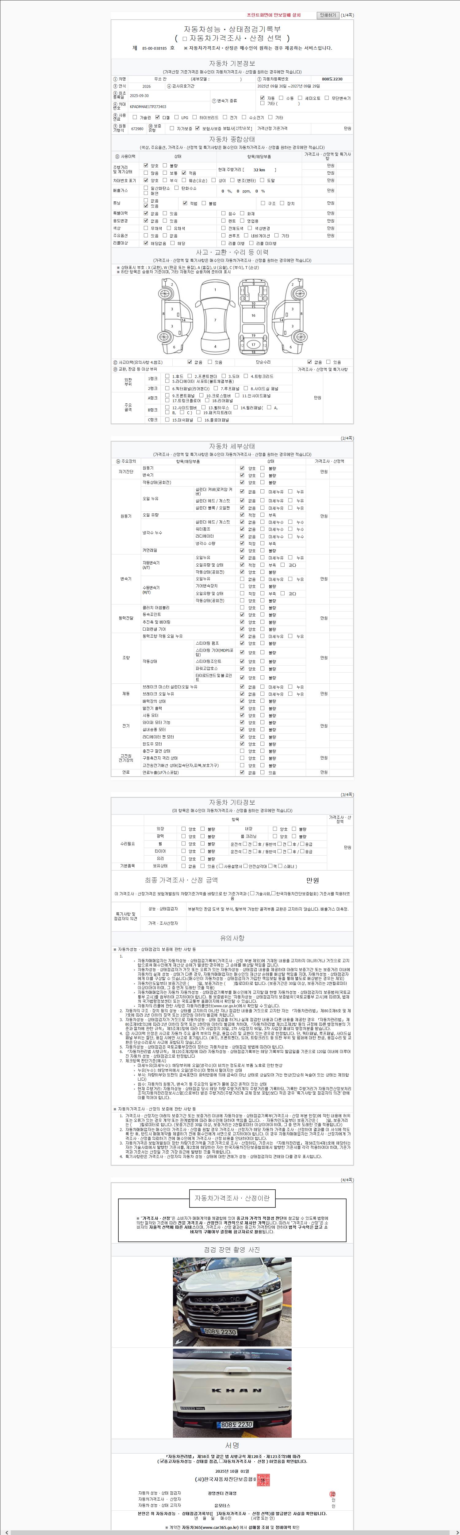 2. 차량 등록증이나 성능점검지 등을 상담자에게 요청및 확인하시고 사전에 미리 점검 하시기를 권유드립니다.