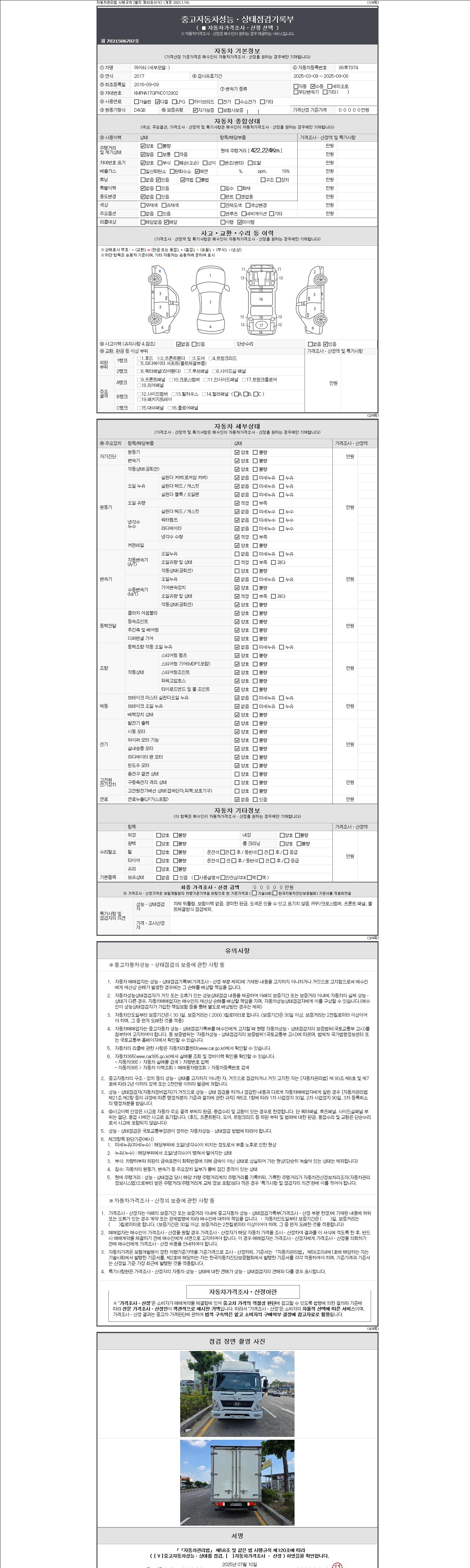 사고유무 성능기록부 참조 제시번호 제 2147483647 호