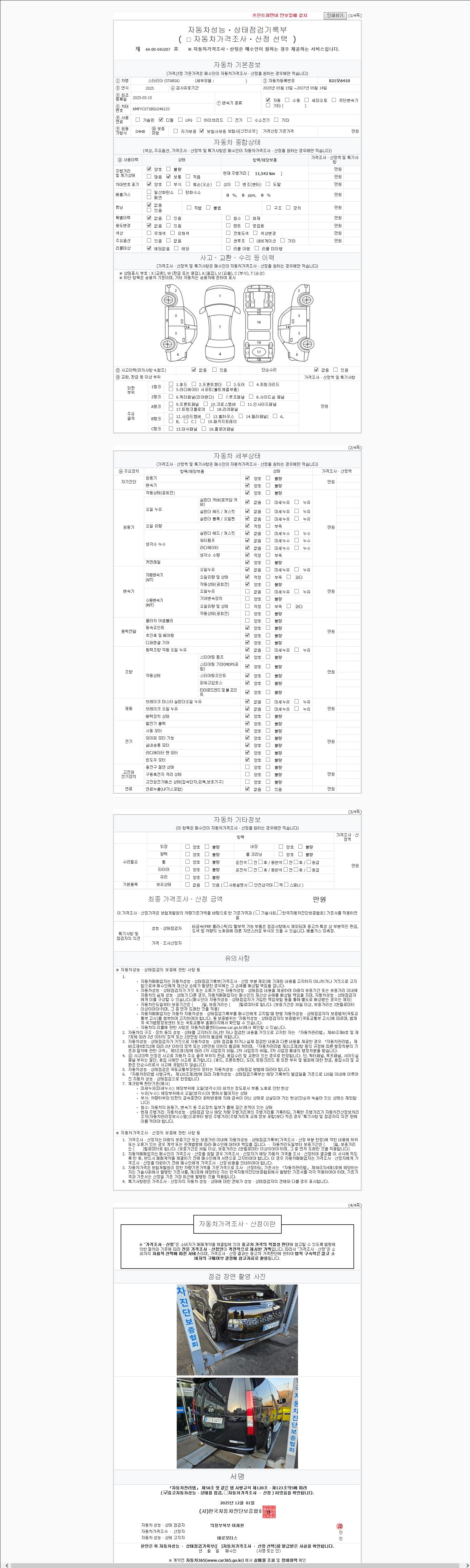 | 사고유무 | 성능기록부 참조 | 제시번호 | 제 2025221076 호 |